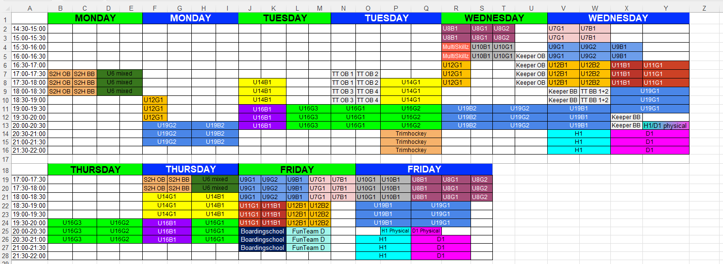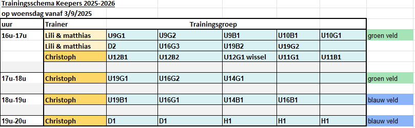 - Geen jeugdtrainingen tijdens de schoolvakanties (behalve in augustus)